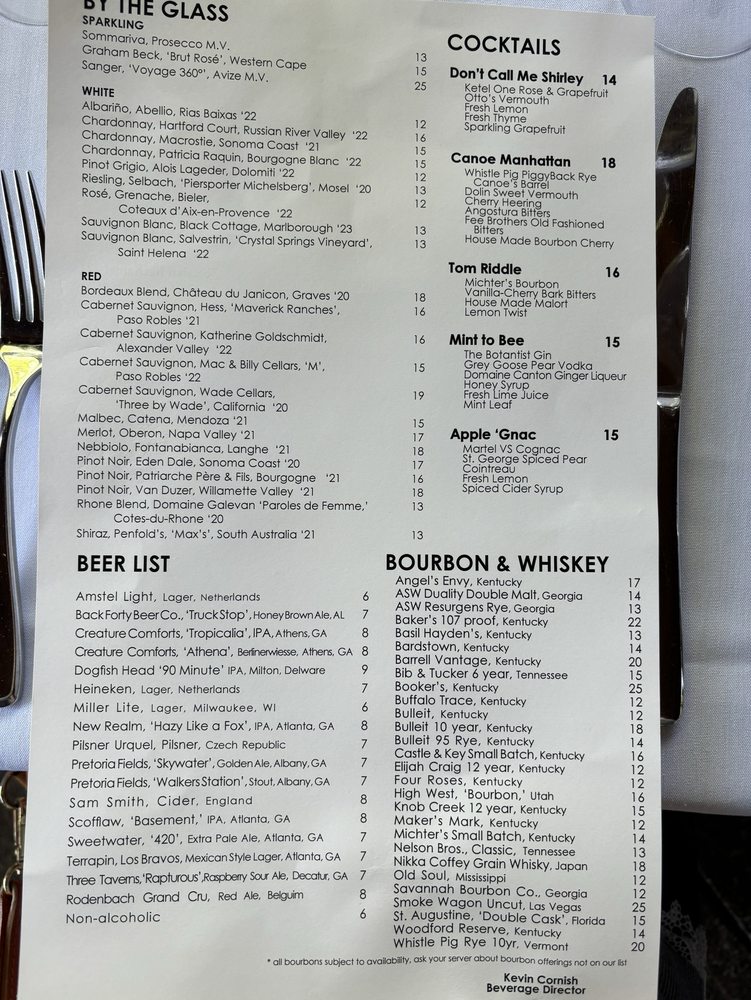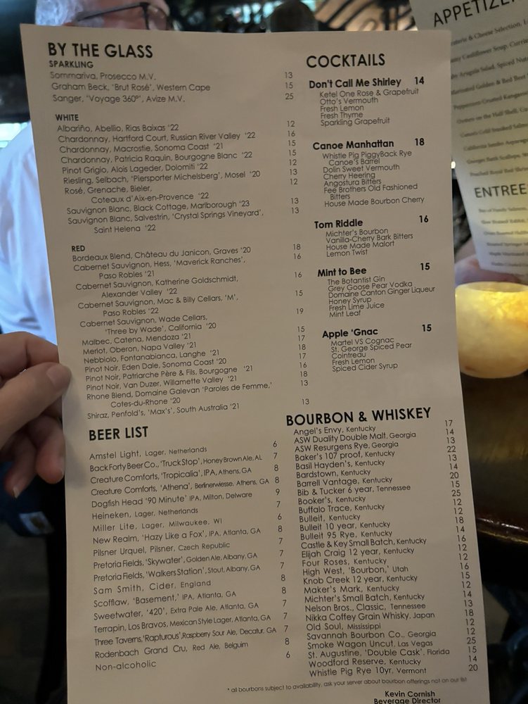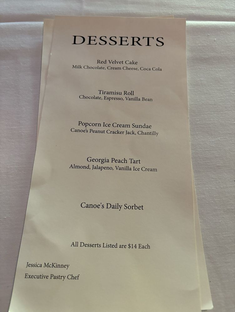 Canoe, located in Atlanta, is a New American restaurant that offers a unique dining experience by the river. With a diverse menu ranging from freshly baked pastries to seafood appetizers and brunch options, Canoe caters to a variety of tastes. Customers rave about the impeccable service and beautiful ambiance, making it a perfect spot for a romantic dinner or a special occasion. The outdoor seating area overlooking the river adds to the charm of the restaurant. Some standout dishes include the SheCrab Soup, Brioche French Toast, and the popcorn ice cream dessert. With options for vegan and limited vegetarian diets, Canoe ensures that all guests can enjoy a memorable dining experience. The combination of delicious food, excellent service, and picturesque location makes Canoe a must-visit restaurant in Atlanta.